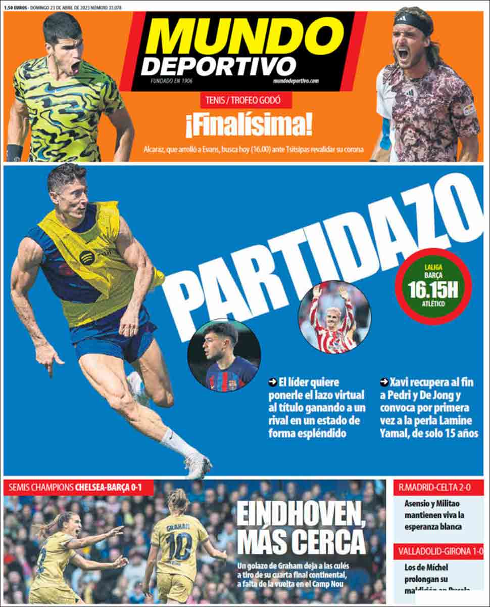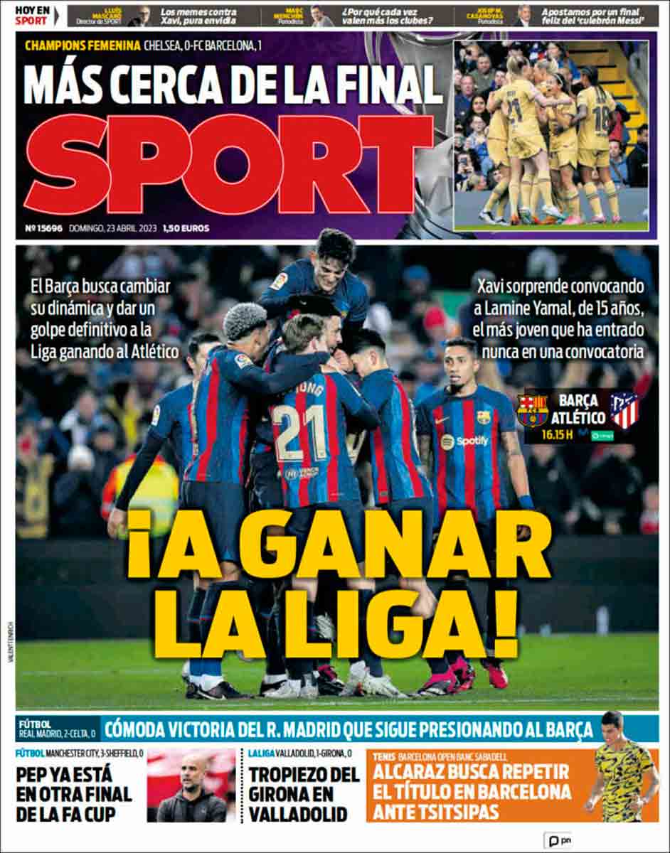 Las portadas culés se refieren a su partido de hoy contra el Atleti, y parece que esa referencia es casi una exigencia temerosa si nos fijamos en los signos de exclamación que decide poner Sport en su titular. Es como si, tras haber comprobado de nuevo ayer que el Madrid no se rinde y que el Madrid nunca duerme, tras haber visto digamos por ejemplo y como ejemplo a Camavinga contra el Celta estuvieran hoy pidiendo por favor ganar la liga, apremiando a los suyos para que lo hagan de una maldita vez, que por detrás hay un equipo que cómo es posible que no duerma y no se rinda.