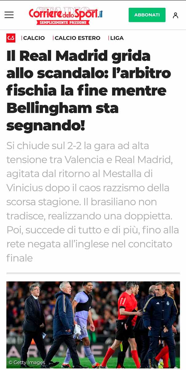Corriere dello Sport: «¡El árbitro pita mientras Bellingham marca!».