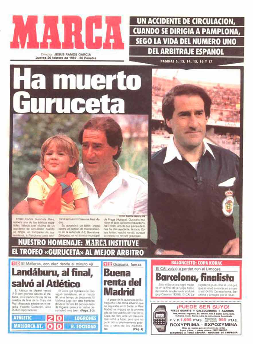 Al día siguiente de su muerte, el diario Marca instituyó el Trofeo Guruceta para premiar al mejor colegiado de la temporada.