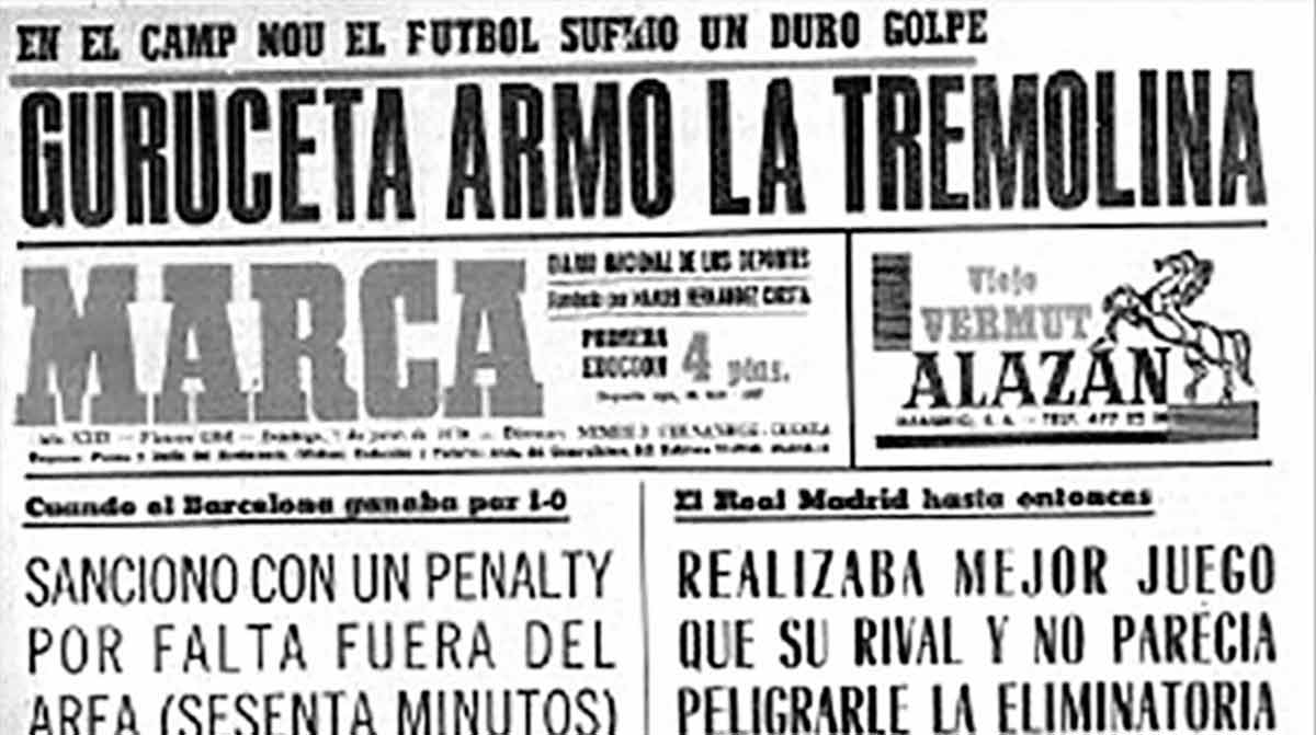 Por consiguiente, "el penalty de Guruceta" aglutinaba todos los componentes de un "cóctel Molotov": el escenario, el Camp Nou; la bestia negra, el Real Madrid; la competición, la Copa del Generalísimo; y el craso error del árbitro, el chivo expiatorio.