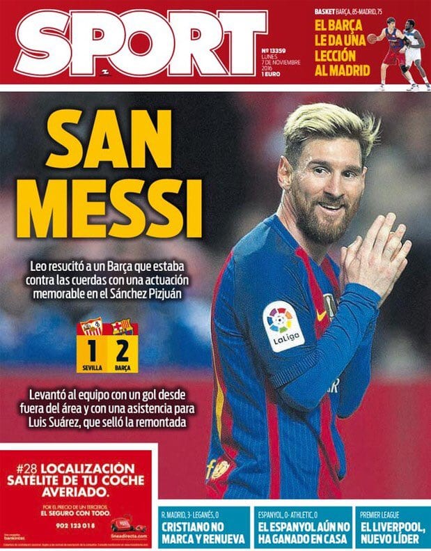 Con lo fácil que era hoy no complicarse la vida. Con lo fácil que era sacar una portada normal y dejar descansar el fusil en el rincón. Pero no. Las guerras no tienen pausa salvo para cenar o cantar canciones mientras uno del pelotón toca la armónica con las manos sucias de polvo y sangre. Menos mal que en el resto de medios, por una vez -y sin que sirva de precedente-, tiran de lógica y hablan de las victorias del Real Madrid y del Barcelona en una jornada en la que ambos meten distancia a ese sólido Atlético de Madrid que nunca hace nada mal pese a estar, a día de hoy, a seis puntos del líder.