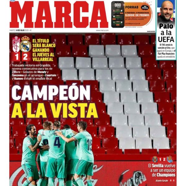 Al menos, en Sport reconocen que el Madrid acaricia la Liga, aunque lo muestran a modo de esquela sobre fondo negro.