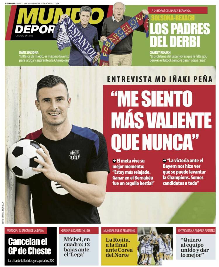 Os dejamos con la portada del Mundo Deportivo, porque, en otro error propio de los dirigentes del fútbol, no se ha suspendido la jornada entera en señal de respeto, así que mañana hay un derbi catalán.