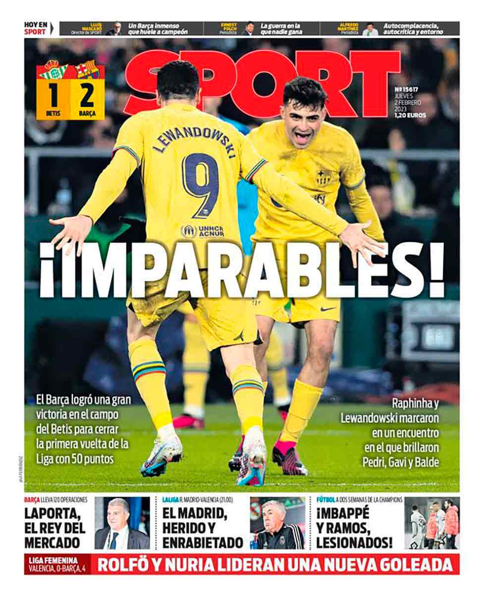 Sport opta por ilustrar su frontispicio con Lewandowski y Pedri bailando Cotton Eye Joe. Y en el faldón se tilda al Madrid de herido y enrabietado. Bueno, tampoco estamos tan mal, aún podemos ser campeones de España, del mundo y de Europa, pero entendemos que valoren más una primera vuelta de 50 puntos que una Champions. Son sus costumbres, su vida es así, no la he inventado yo.