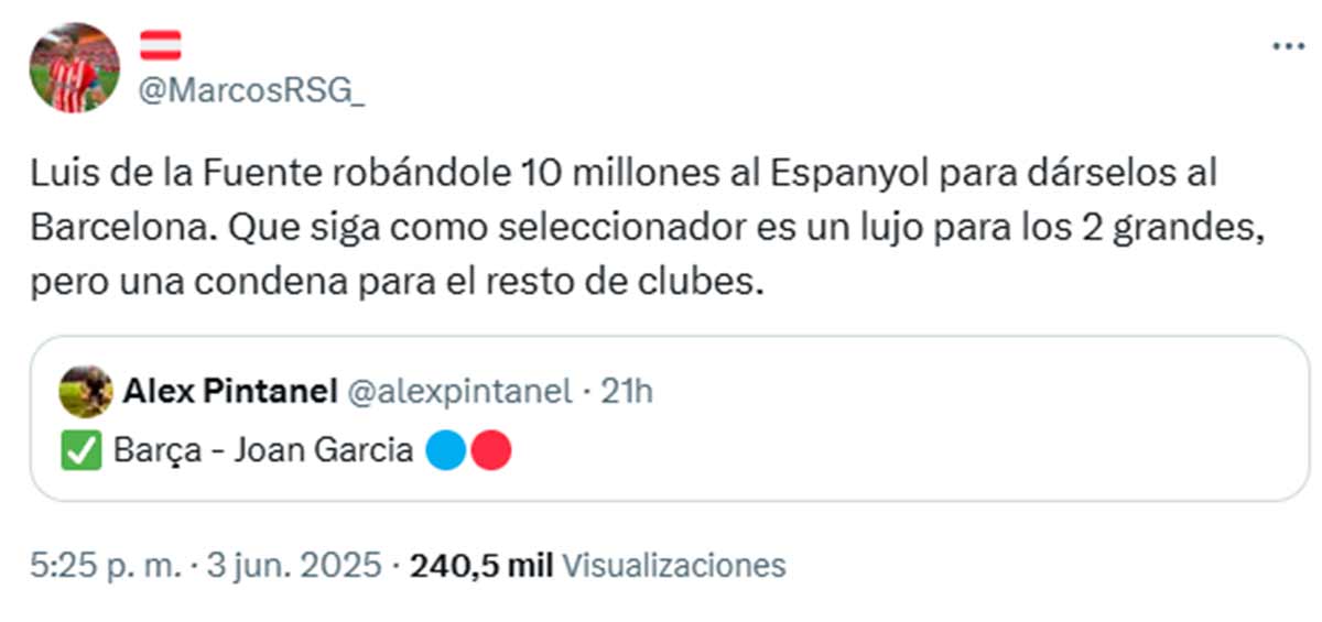 Sobre este asunto, como muestra del estado del fútbol —y de la sociedad—, esta publicación de X: