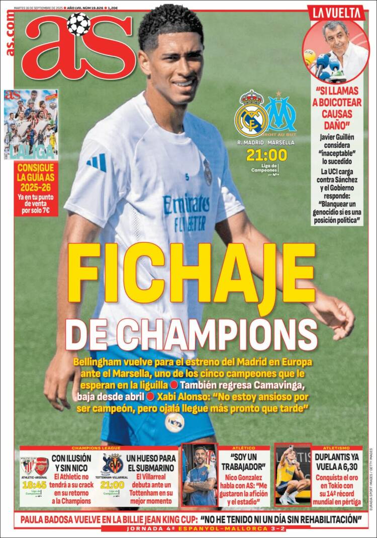 En Marca y As vemos cosas que nos alegran: vuelve la Champions y vuelven Bellingham y Camavinga. Esta noche jugamos contra el Marsella un partido que huele a jabón de ídem, no al papel higiénico patrio. Alberto Cosín ha preparado un análisis del peligroso equipo de De Zerbi, no os lo perdáis.