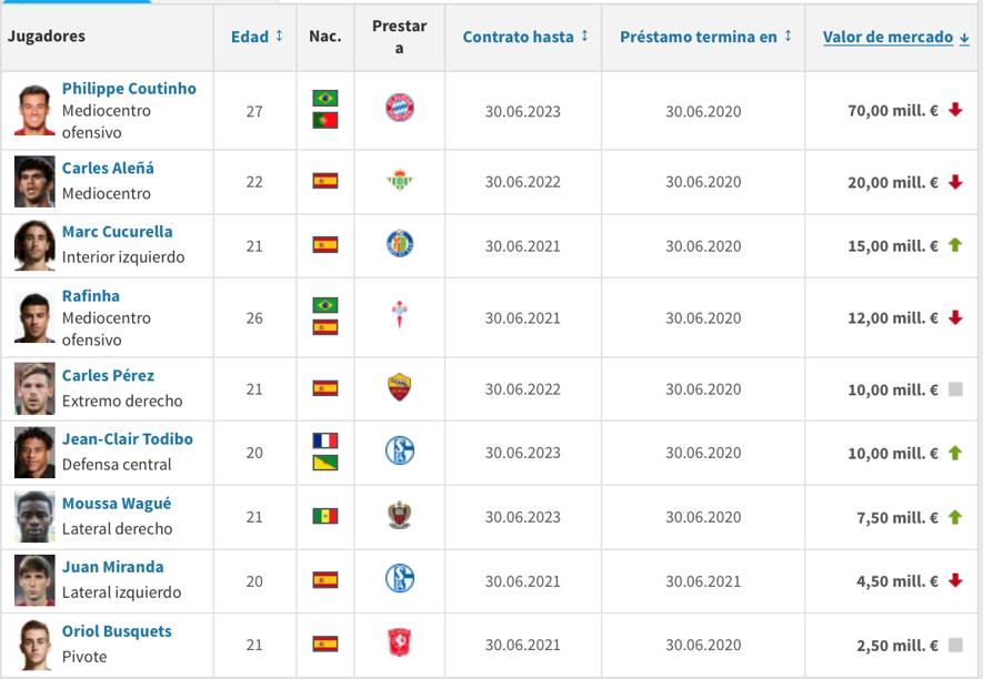 El Barcelona, por su parte, tiene a jóvenes canteranos por explotar como Riqui o Ansu Fati, proyectos de futbolista como podrían ser Kubo o Reinier, lejos todavía de la madurez futbolística que reclama un equipo de élite como el Real Madrid o el F.C.Barcelona. Como cedidos, tiene a jugadores como Rafinha, Cucurella, Aleña, Miranda, Todibo y Busquets. Los dos primeros con opción de compra en los clubes donde están cedidos, y los tres últimos incógnitas, siendo ahora mismo su valor insuficiente para generar grandes ingresos.