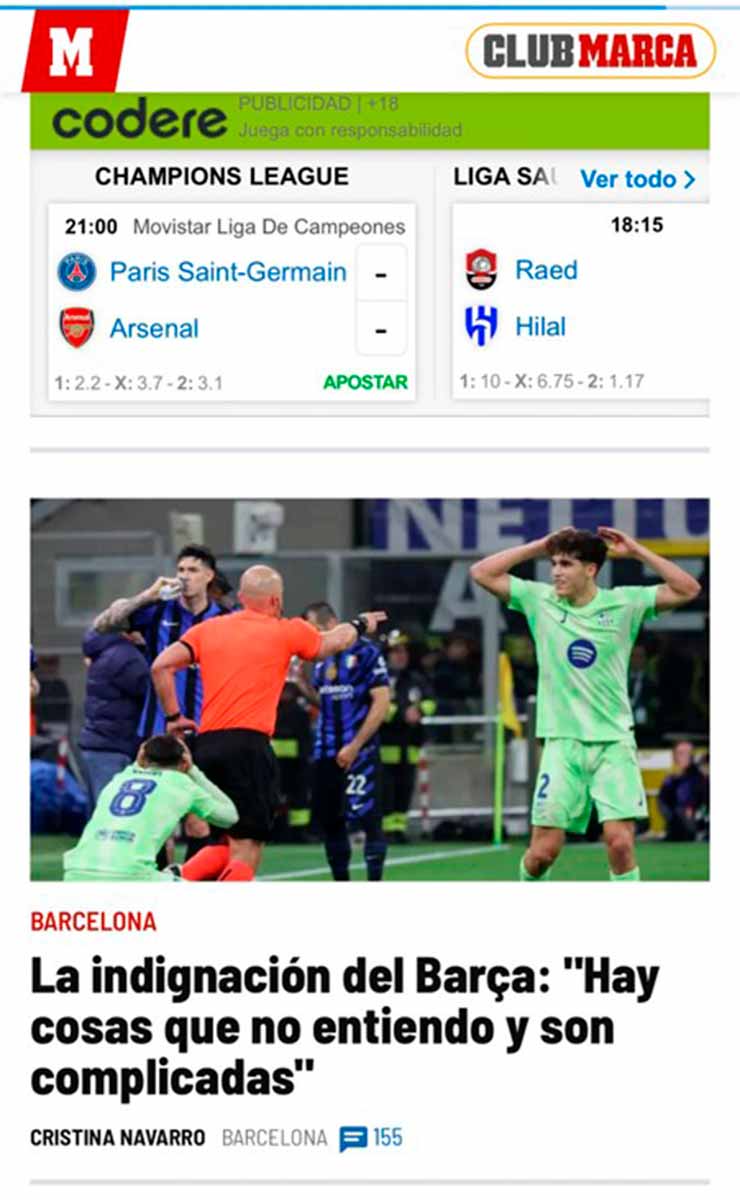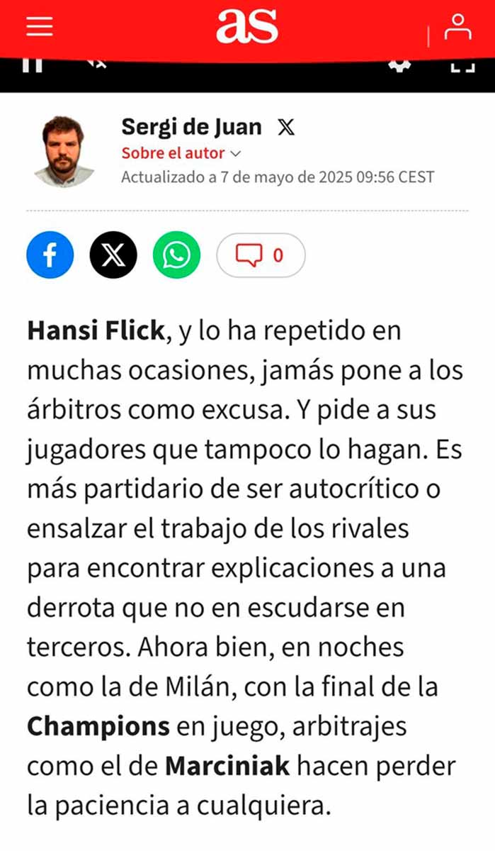Javier Bosch hoy el mundo deportivo tiene la cara dura de decir que a Lamine le hicieron 7 faltas durante el partido y el árbitro solo sacó 2 tarjetas y ya en la prórroga y como párrafo final a su artículo denuncia "a veces los partidos y los títulos se deciden de manera muy sibilina"