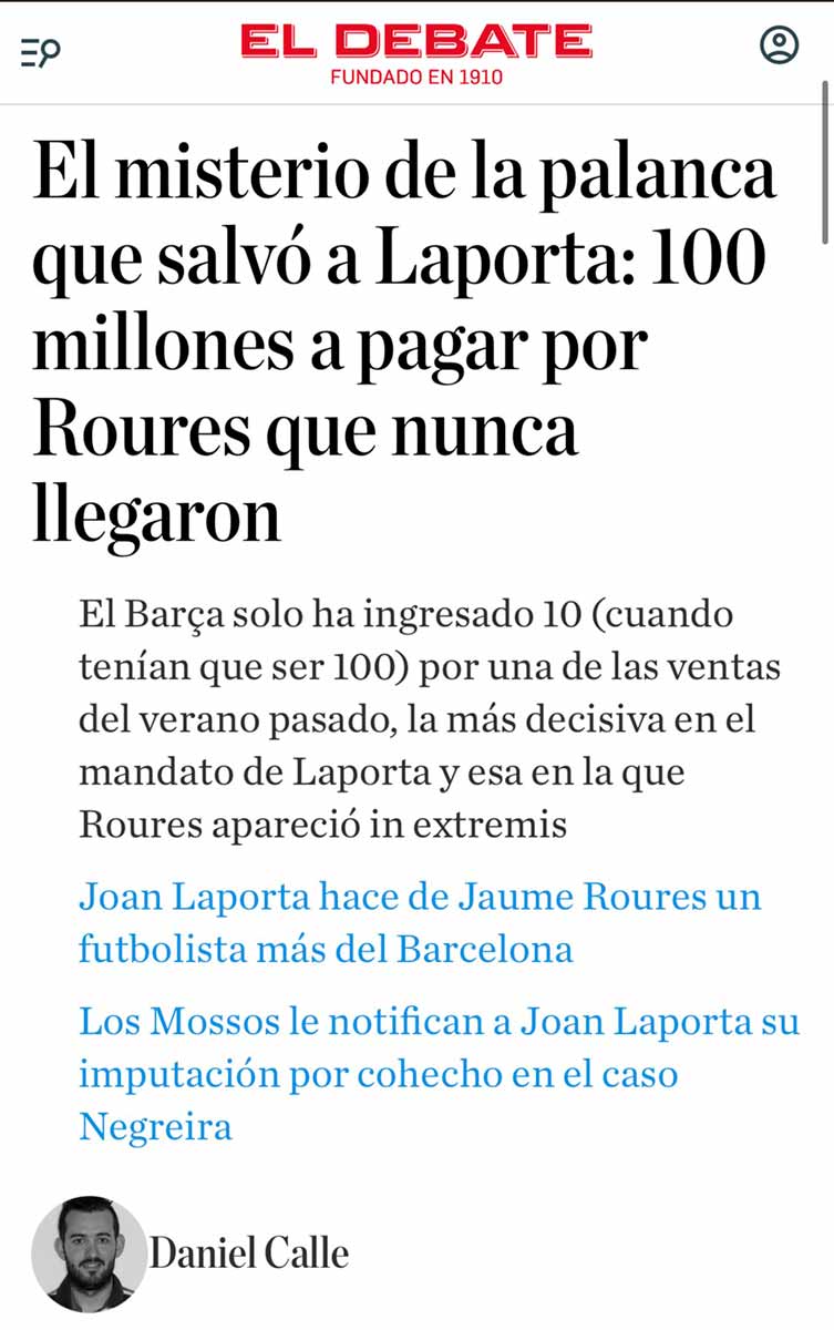 —¿Y también son conscientes de que el Barcelona inscribió primero a numerosos jugadores como Lewandowski, Koundé o Raphinha gracias a aquel primer fraude que denominaron “palanca” y que resultó ser un préstamo encubierto de Jaume Roures?