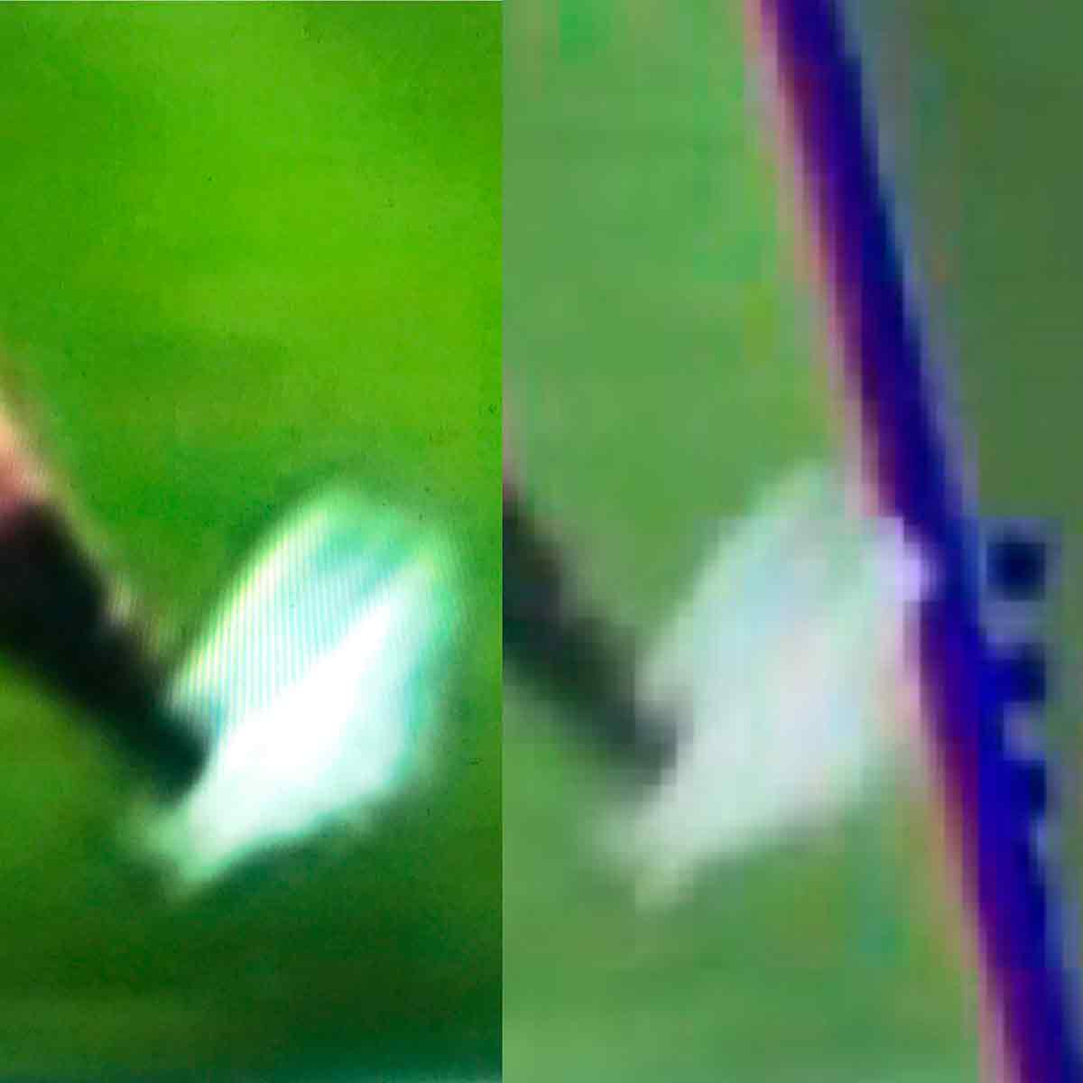 A raíz de una serie de controvertidas decisiones tras las que se anularon goles por márgenes inferiores a cinco centímetros, The Mail publicó este análisis sobre una jugada y la diferencia entre utilizar un frame u otro bajo el título Por qué el VAR nunca podrá ser definitivo:
