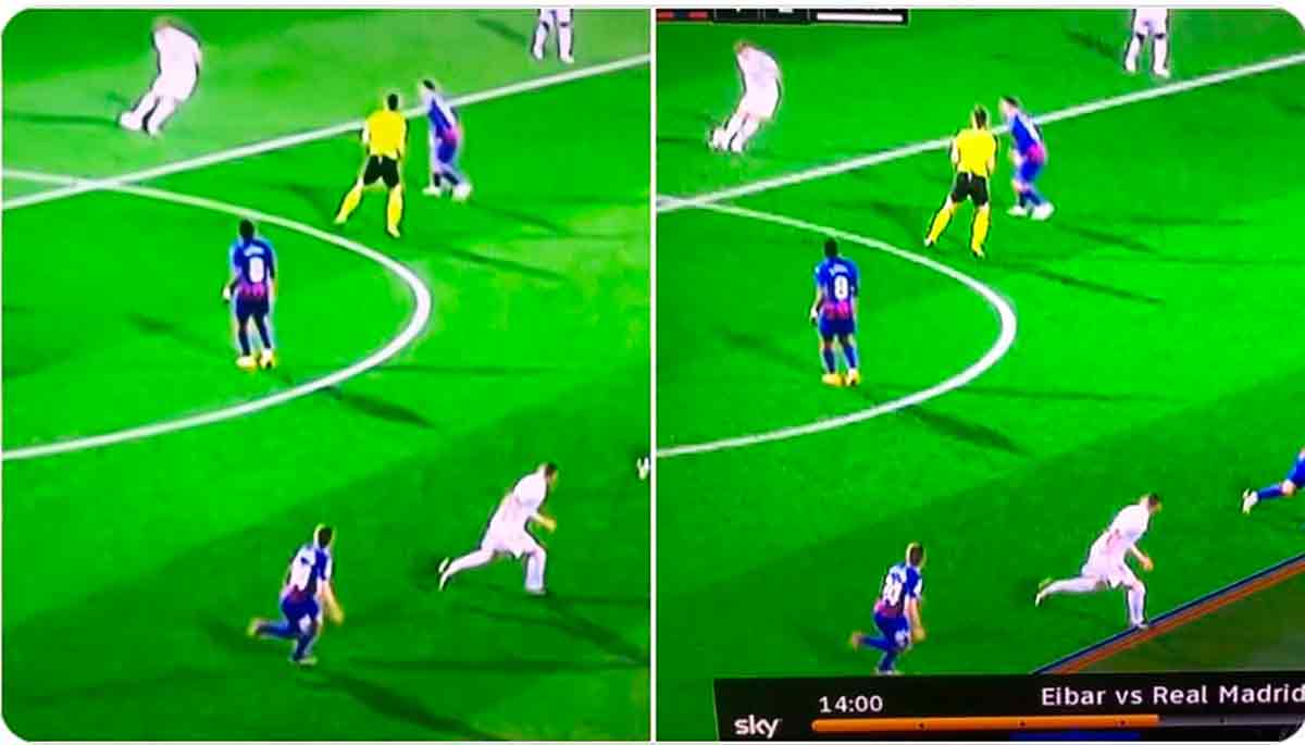 Sin embargo, ese balón parecía haber salido ya de la bota de Kroos, como se observa por la elevación del mismo en comparación con el frame anterior seleccionado por los compañeros de Defensa Central: