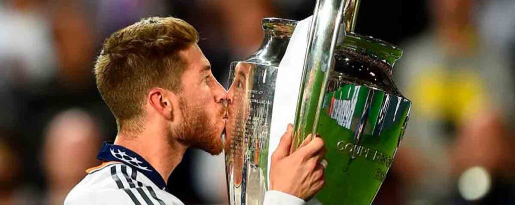 Esta foto simboliza un proceso largo y difícil: el que ha convertido a Sergio Ramos en el hombre que susurra a las Copas de Europa. Durante más de una década, ha sido vilipendiado, criticado, ensalzado y satirizado de cuantas formas puedan imaginarse. Comparado con Maldini y Fernando Hierro primero, despreciado con el anatema terrible de ¡sobrevalorado! después, Ramos aprendió a escribir la Historia a su modo natural, que es, por supuesto, a cabezazos. Dados y recibidos. En Munich se rompió la nariz; fue la primera vez que lo eliminó el Bayern. Allí le anularon un gol legal, que hubiese valido la clasificación: 4 años después, frente al mismo rival, falló el penalty decisivo de una tanda que apartó al mejor Madrid de Mourinho de la final anhelada. Ha sido expulsado más de veinte veces en partido oficial, la cuenta de sus errores tirando el fuera de juego durante un lustro es interminable, y aparece en el retrato de dos derrotas históricas frente al Barcelona en el Bernabéu: tirado en el suelo a mil leguas de viaje submarino de Ronaldinho, en el 0-3 de 2006, y ardiendo más allá de Orión tras la espalda de Henry, en el 2-6 de 2009.