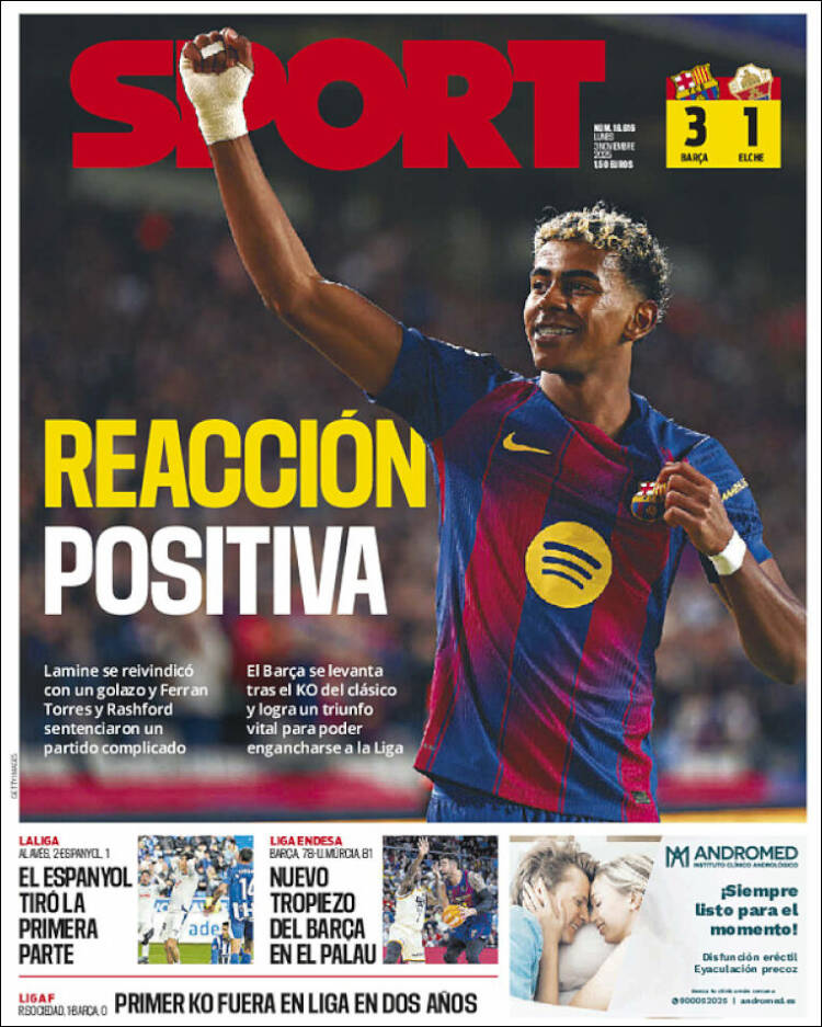 La prensa cataculé, por su parte, glosa el cantar de gesta de la victoria de su equipo frente al casi invencible Elche, y se congratula ante el hecho de que Lamine Yamal marcara el primer gol. Nos parece bien. El refuerzo positivo, en las raras ocasiones en que se comportan, siempre ha funcionado con adolescentes díscolos y preocupantes.
