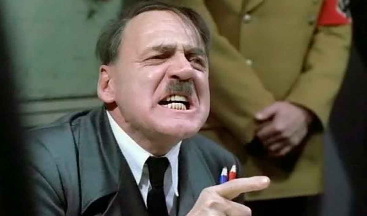 La película alemana El Hundimiento se hizo famosa a principios de siglo por, además de ser una gran película, una de sus escenas más célebres, que coincidiendo con el boom de Youtube y de las redes sociales, se viralizó como plantilla infinita de memes: aquella en la que Hitler, completamente desbordado y fuera de la realidad, planifica la defensa de Berlín moviendo en un mapa regimientos inexistentes. Sus mariscales y generales a duras penas se atreven a contarle la verdad, y cuando lo hacen, Hitler estalla en cólera. La furia del Führer representa desde entonces, en la memecracia contemporánea, la espantosa incredulidad de alguien ante un colapso repentino: como si se le pudiera hacer una foto a la cara del piloto de un avión que va en caída libre justo en el momento en que se percata de ello. Con razón, Richard Dawkins definió al meme como «la unidad de información cultural más pequeña».