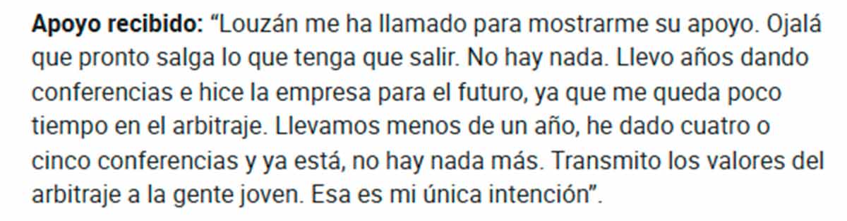 Como expuso acertadamente anoche Carreño, incluso si no ha facturado no es lo más relevante, porque hay muchas maneras de facturar y de pasar facturas. Lo más relevante es mantener relaciones con clubes, federaciones y organismos del fútbol mientras se es árbitro en activo, tener tratos con un club al que puedes pitar la siguiente jornada o le dirigiste la anterior.