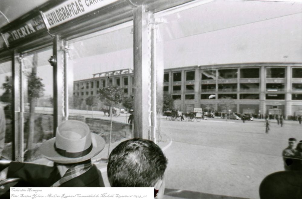 1947, por supuesto, cuando Don Santiago Bernabéu materializó su sueño de tener un estadio con enorme capacidad para 75.000 espectadores, en plena época de reconstrucción del país, cuando los españoles se levantaban cada día pensando en las cartillas de racionamiento y el fútbol era, junto con las corridas de toros, una de las escasas vías de escape y de ilusión para un país derruido.