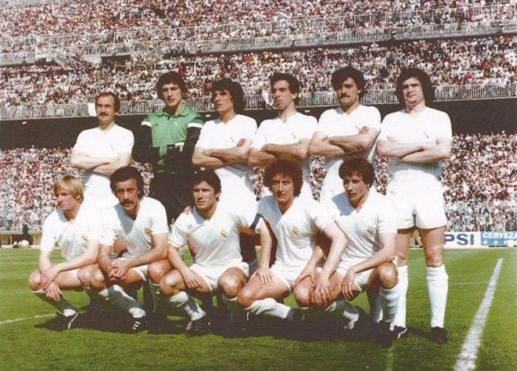 Stielike, Agustín, Sabido, G Cortes, G. Navajas y Camacho; Pérez García, Del Bosque, Santillana, García Hernández, Isidro