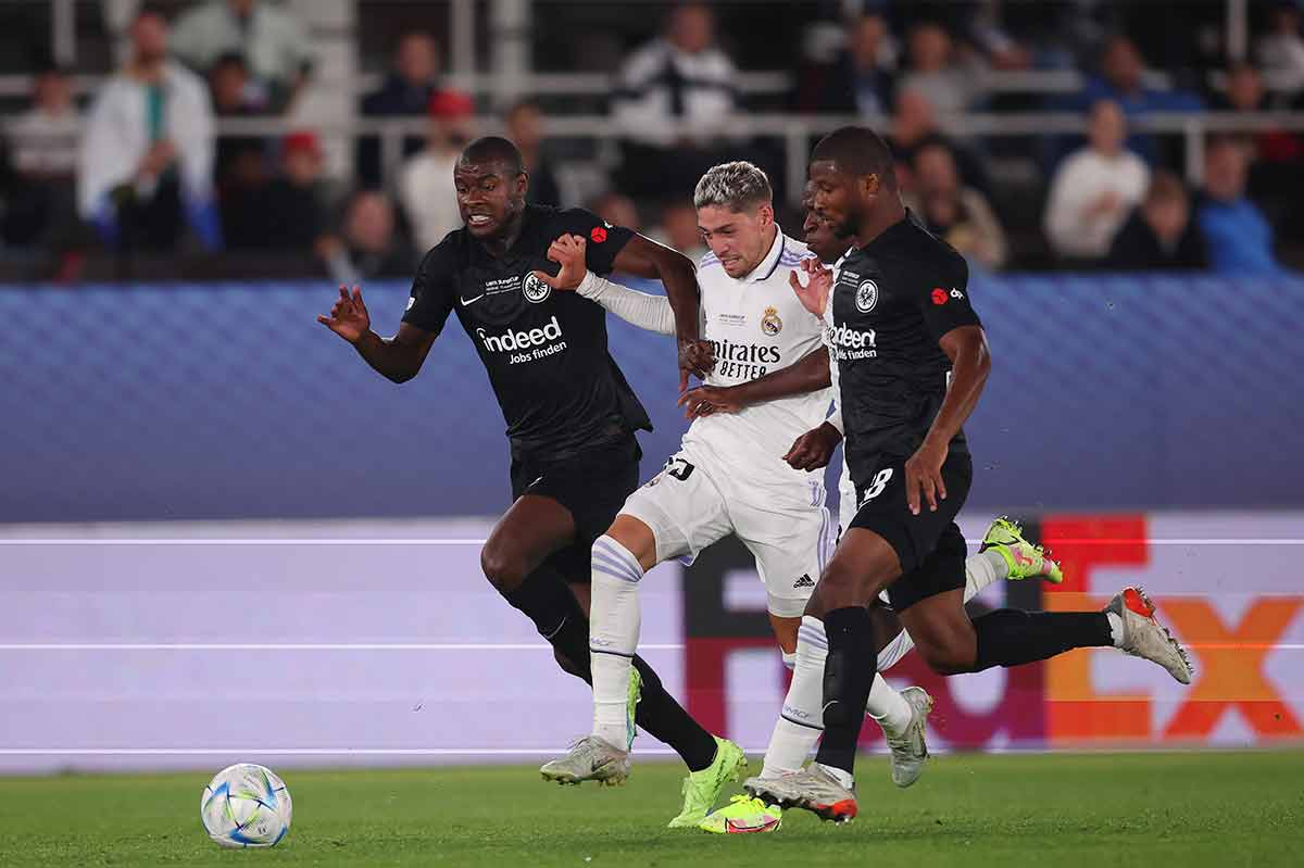 Como dice Hughes en su crónica del domingo por la noche, con Tchouaméni y Valverde “el mediocampo muerde, roba y el Madrid es como un skyline al que le hubieran surgido, de repente, dos torres altas a las que hay que ir acostumbrándose. Es como si Madrid cargase su relieve capitalino, su horizonte de rascacielos por los campos de España, y el contraste por momentos es grande”. Este camino ya lo apuntó Zidane tras su regreso en marzo de 2019 al banquillo del equipo. Por aquel entonces Valverde estaba ya en el primer equipo pero no era indiscutible. El Madrid, que había tiranizado la Copa de Europa con un centrocampismo abusivo y total articulado en torno a futbolistas hipertécnicos de aliento largo, culo bajo y piernas cortas y poderosas, se estaba quedando atrás. Estaba ralentizándose y se hacía viejo. Zidane planteó una solución temporal que fue agrupar en bloque al equipo y aprovechar el poderío sapiencial de sus grandes mediocampistas para reducir los goles en contra y maximizar los goles a favor, pero aquella no podía ser sino una solución de emergencia. Antes había querido fichar a Pogba e insistió en ello. Ahora que vemos a Tchouaméni y a Camavinga, entendemos por qué: era necesario dilatar el campo, ampliar los espacios, conquistarlos, ensanchar al equipo por los costados y, sobre todo, acelerarlo. La clave del cambio es la velocidad. El Madrid de los príncipes nubios es un equipo rápido con unas piernas colosales ancladas a las costuras del campo, de tal manera que defender y atacar es un todo. El Madrid de Camavinga y de Tchouaméni juega en un permanente balance que convierte cada ataque del rival en un potencial contragolpe, un equipo “eléctrico” que conecta con el gran Madrid de Mourinho en 2012, una especie de revival.
