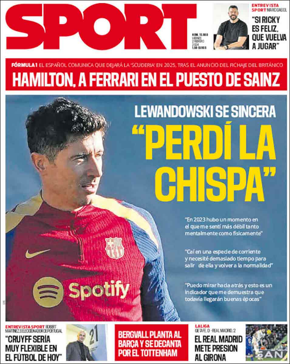 «Perdí la chispa», titula Sport. Pero no es una bujía quien hace esta confesión, sino de Robert Lewandowski, que no carbura. El polaco dice que en 2023 hubo un momento en el que se sintió más débil tanto física como mentalmente, que cayó en una especie de corriente y necesitó demasiado tiempo para salir de ella. Robert, no era una especie de corriente, donde caíste fue en el FC Barcelona, y lo que te pasa es consecuencia de ello.