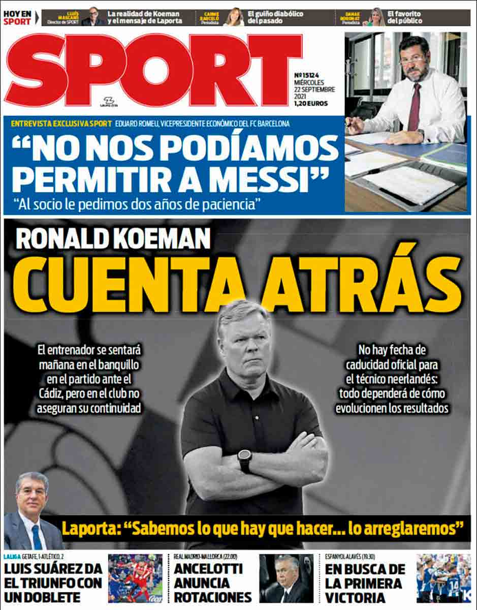 La prensa cataculé, entretanto, sueña, bien es cierto que a otra escala. Los sueños también bajan de nivel. Antes eran Neymar y Lautaro, a pesar de que era público y notorio que no había dinero para ello. Ahora sus sueños se circunscriben a echar a Koeman, si bien es también público y notorio que tampoco hay dinero para ello, dado que está el pequeño detalle de la indemnización. Hay detalles que aun siendo pequeños pueden llegar a dilatar su cumplimento en el tiempo. Que le pregunten a Quique Setién, por ejemplo, que tiene a sus vacas exangües porque necesita producir cantidades ingentes de leche que alivien el lucro cesante por su no-indemnización.