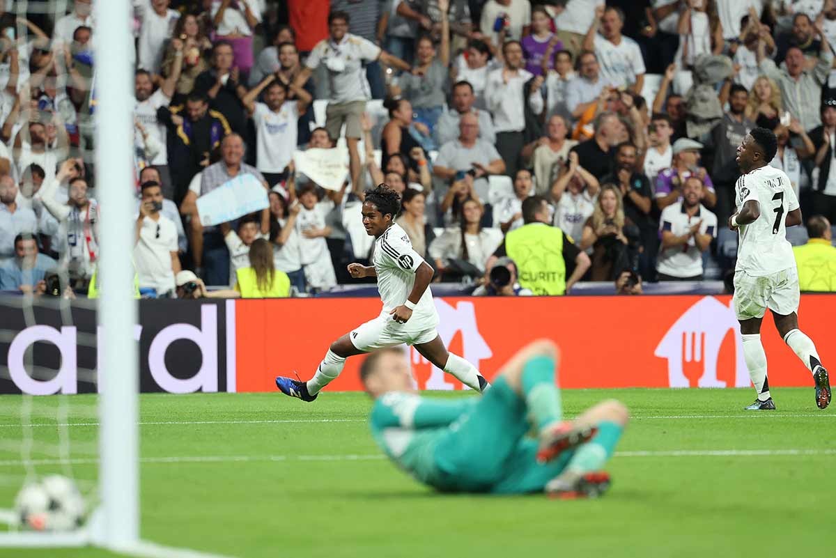 Endrick ha marcado el gol nº 140 en Copa de Europa a equipos alemanes.
