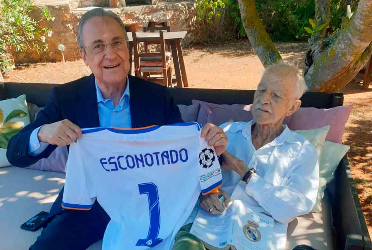 Pasé meses preguntándome si luego se la pondría. Tuvo que morirse para que yo obtuviera la respuesta. Entre sus amigos y familiares empezaron a circular fotos legendarias, a algunas de las cuales tuve acceso. Y allí estaba Escota, acompañado por Nieves, la maravillosa mujer que le cuidó en sus meses postreros en Can Partit, luciendo la blanca prenda por cuya manga asomaba un brazo esquelético. Y esa sonrisa otra vez. Ya era público que se había ido a Ibiza a morirse, que es una cosa que según algunos supone el retorno al útero materno, aunque para Antonio seguro que significaba volver al Bernabéu con su padre, y quedar de nuevo prendado de esa pared entre Gento y Rial. "Y decía que no era madridista", suspiró un hijo transido de un buen humor infinitamente melancólico.