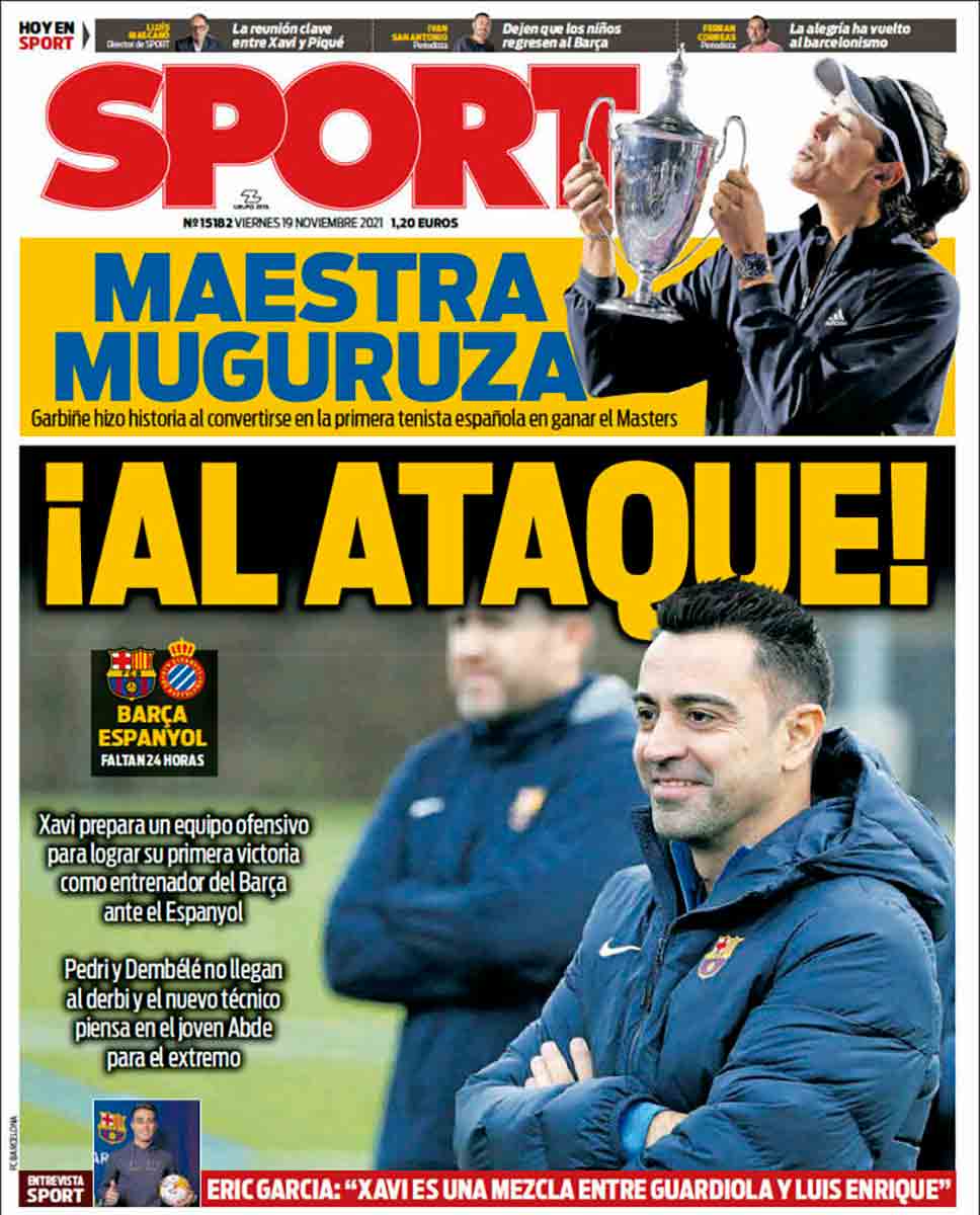 No se nos ocurre nada de peor gusto que mezclar en la misma portada a Garbiñe Muguruza con Xavi Hernández. Una cosa es el esplendor en la hierba (o en tierra batida) y otra la turra con el céspet.
