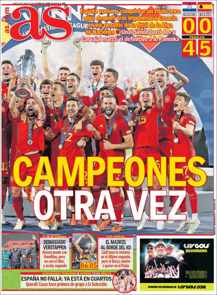 Buenos días, amigos. La selección española de fútbol se proclamó ayer campeona de la Nations League al derrotar a Croacia en los penaltis, después de un soporífero partido seguido de 30 minutos de insufrible prórroga y de los mencionados lanzamientos desde el punto fatídico.