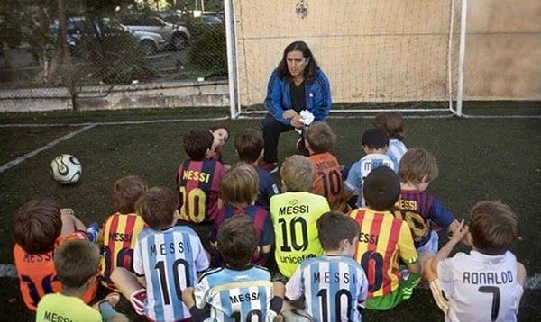 Me pregunto qué les está diciendo a esos niños su profe. Vale que es la hora de educación física, pero eso sigue siendo educación. Me tranquiliza mucho que se esté dirigiendo al sector de Messi, o por decirlo menos capciosamente, que no se esté dirigiendo al único punto que queda fuera de ese sector. Porque si en vez de ser un maestro fuera un moralista, es por esa blanca oveja negra por la que se interesaría exclusivamente. Pero no, parece que esos niños tienen suerte y han caído en buenas manos. Seguramente les está diciendo que hay muchas formas de ser «bueno», incluso de ser «el mejor», y que la clase, el universo y el fútbol son también mejores de esa manera. Y que alguna vez, si a Messi y Cristiano les diera por intercambiarse la camiseta después de un clásico, demostrarían que de verdad merecen que ellos les admiren tanto. Que para eso están los profesores.