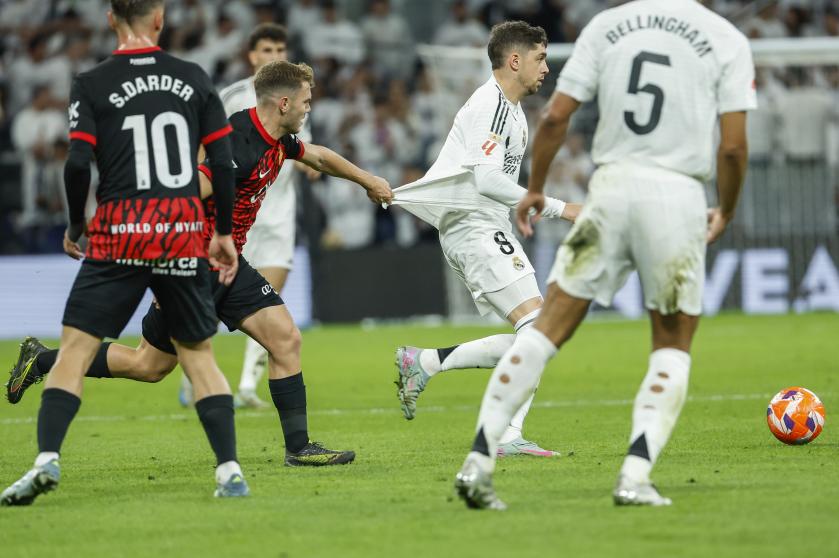Se une a los refuerzos de Mateo Joseph, Pablo Torre y Kumbulla. El técnico Arrasate cuenta con la baja segura de Pichu Cuellar por una lesión esta semana, y con las de Maffeo y Larin, que están fuera de la disciplina del equipo a la espera de encontrar un comprador en los días que quedan para cerrar el mercado de traspasos. Hay alguna duda en cuanto al sistema de juego porque se especula que salga con cuatro defensas de inicio como en los otros dos partidos o que cambie a una línea de tres centrales como ocurrió en la segunda parte frente al equipo gallego. Al ser un choque fuera de casa y en el coliseo merengue, apostamos por la segunda variante, que supone cuatro jugadores en el medio incluyendo los carrileros, un enganche y dos jugadores arriba. Un once probable sería el formado por Román; Valjent, Raíllo, Kumbulla; Morey, Morlanes, Darder, Mojica; Darder, Asano, Muriqi.