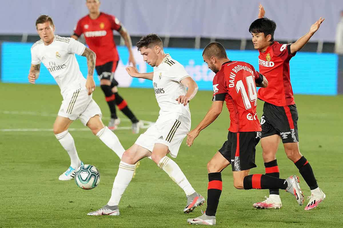 El Mallorca ha rentabilizado muy bien sus goles con solo tres a favor pero que le ha hecho sumar siete puntos. El fichaje los últimos días de mercado de Fer Niño y Hoppe, junto a la lesión de Ángel, han cambiado el aspecto de la delantera respecto a la primera jornada liguera y es el frente ofensivo que se asienta ahora en el equipo de la isla. Las bandas son la fuentes canalizadoras del peligro mallorquinista con Kubo por la derecha y Mboula, Lago Junior o Amath por la izquierda. También es importante mencionar a Dani Rodríguez, un segundo punta muy rápido, con buen regate en carrera y gran llegada al área para finalizar con su disparo. Los cuatro de arriba se juntan para montar contragolpes rápidos, verticales y directos. Se despliegan velozmente y en pocos toques arman contras que suponen la mayor amenaza de los bermellones. Kubo pone la pausa, la calidad y visión para colocar los balones, mientras que sus compañeros son los que trazan desmarques y se mueven bien para que el japonés los encuentre cerca del área rival. El centro del campo y la defensa merengue deberán replegar con agilidad y rapidez para contrarrestar esta arma que es la que más daño puede causar en el Santiago Bernabéu.