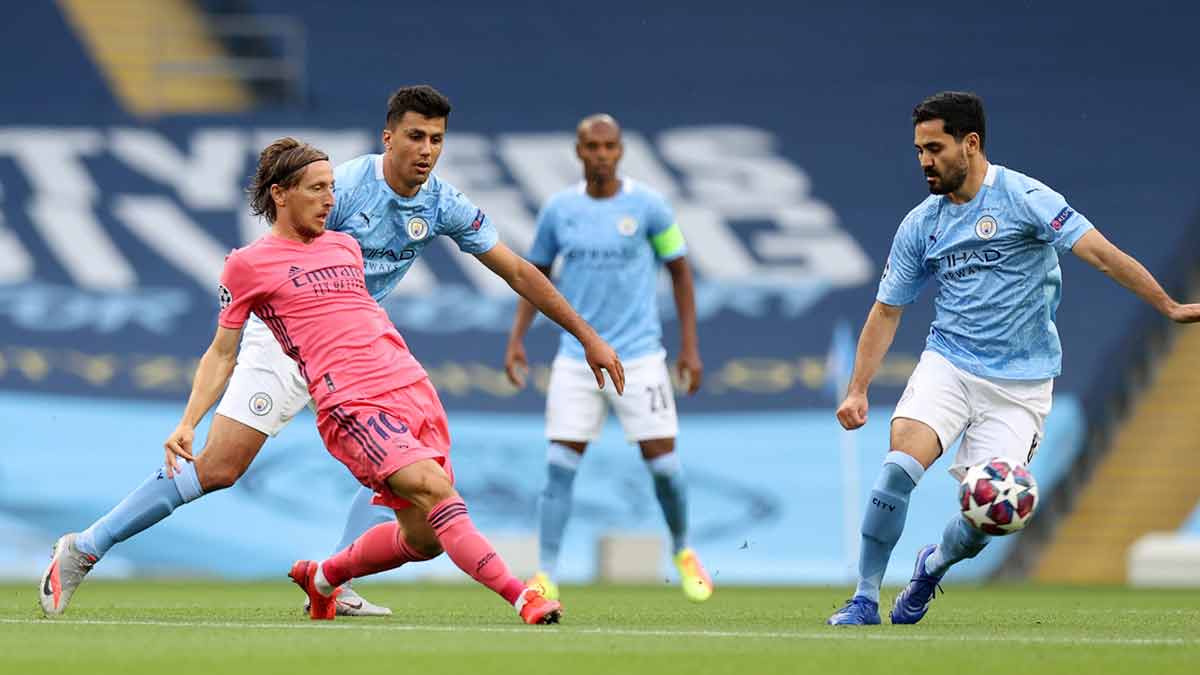 Una batería de jugadores de calidad exquisita, desborde, talento, visión de juego y efectividad. Los citizens cuentan con siete piezas ofensivas de una calidad sublime y que casi todos pueden decidir un partido en una individualidad. Véase: de Bruyne, Bernardo Silva, Mahrez, Foden, Grealish, Gabriel Jesús y Sterling. En la Premier son el segundo máximo realizador del campeonato (80 goles) solo por detrás del Liverpool, y este año en Champions ya han realizado varias goleadas como los seis goles anotados ante el RB Leipzig, los cinco frente al Sporting Clube o los nueve en dos encuentros contra el Brujas. Los laterales suman su importancia debido a sus subidas por el carril, aunque la baja de Cancelo les deja cojos en el aspecto de ataque por toda la llegada que aporta el luso. Además, los medios se incorporan hasta casi la frontal del área y ahí se debe tener cuidado con los disparos peligrosos de Rodri y de Bruyne. En el juego aéreo todo se basa en el poderío de Laporte y Días, que son magníficos cabeceadores. La posible baja de Casemiro puede ser muy dañina para el Real Madrid porque en choques así el quite y los robos del brasileño se antojan siempre vitales. Atrás, la línea con Militao y Alaba debe empujar al equipo arriba y tapar todas las vías de agua. En las bandas también se verá unos bonitos emparejamientos con Mendy, que ya sufrió ante Mahrez en 2020, o un Carvajal que puede volver a tener como pareja de baile a Sterling.