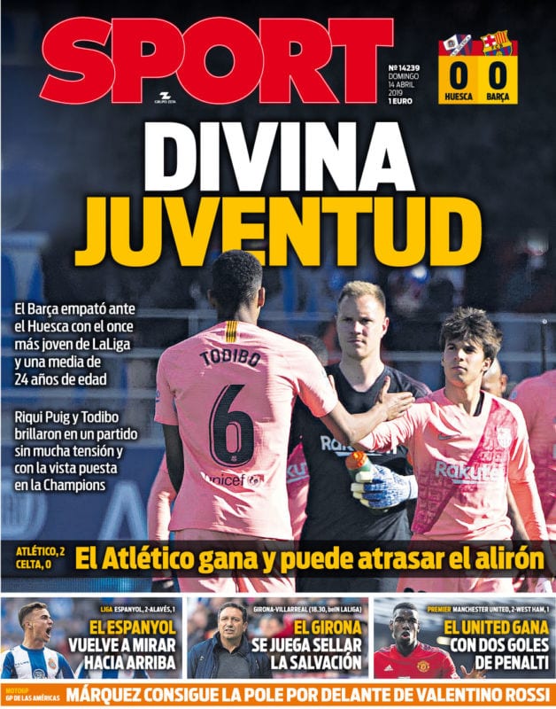 En el resto de portadas observamos que 'Marca' se la juega por Jovic como principal objetivo para el ataque del Real Madrid y que la prensa catalana presume de los jóvenes tras un gris empate en casa del colista. No estamos para hablar mucho tras la horrible temporada realizada en Liga, pero lucir músculo canterano con todo el pescado vendido para luego olvidarte de él en los partidos importantes no deja de ser sorprendente. Pasen ustedes un fantástico domingo.