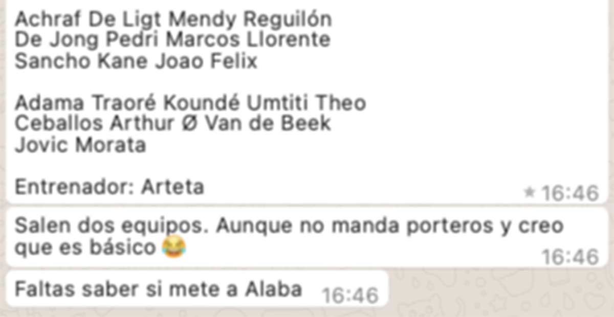 FE DE ERRATAS 2: No existe Traoré Kounde. La culpa es de Alberto, que no me pone comas (o números) en la alineación y me lía. Traoré es el apellido de Adama, Adama Traoré, el del famoso dúo musical con Ádamo. Les pido mil perdones.