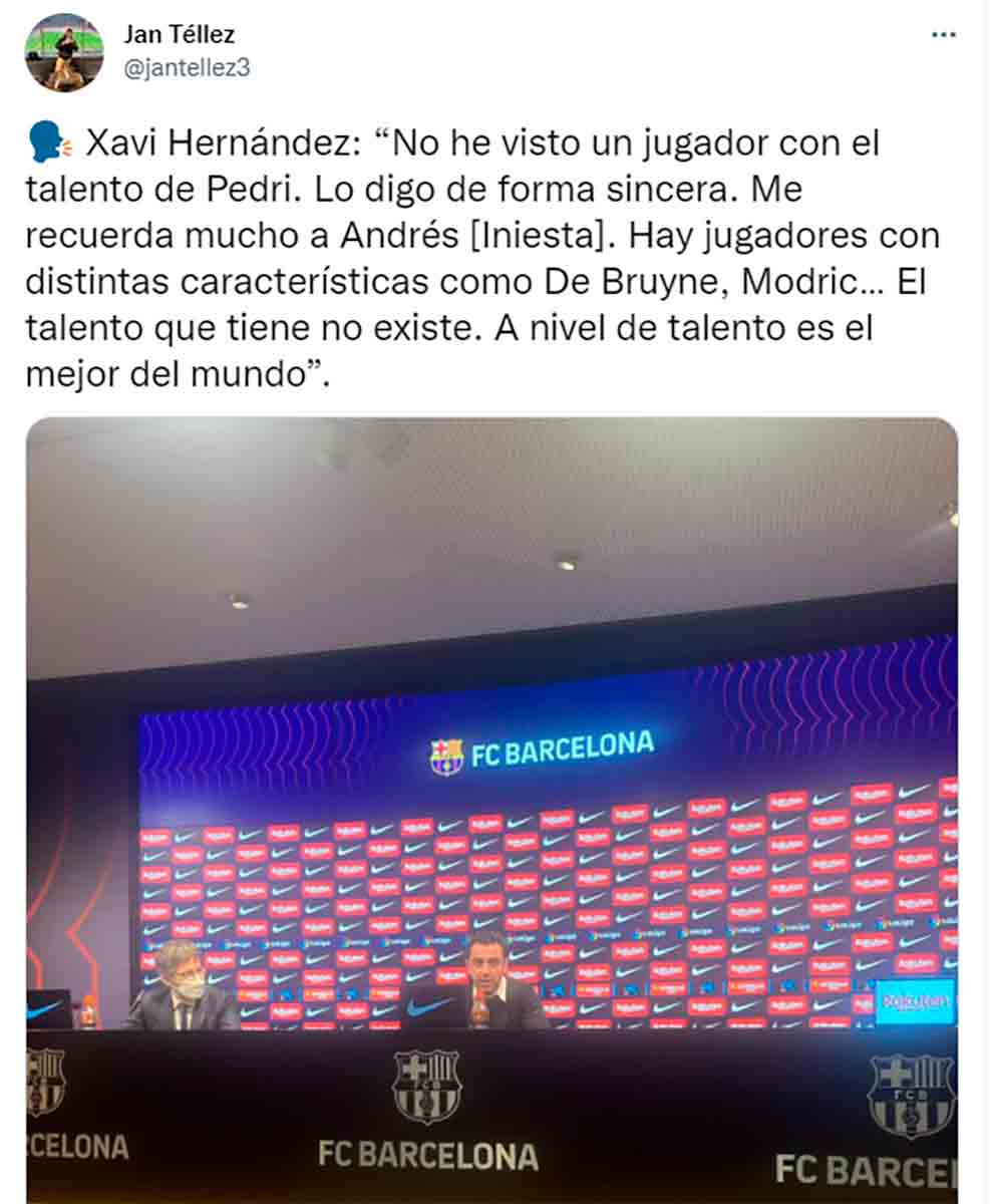 Sobre Pedri y demas; jamas comprenderan el daño que le hacen al jugador con una inmensa sobrevaloracion. Dice que es el mejor en talento del mundo? Xavi debe presumir de conocer mucho el mundo del futbol. 1 gol y 2 asistencias es el bagaje del jugador en esta temporada.