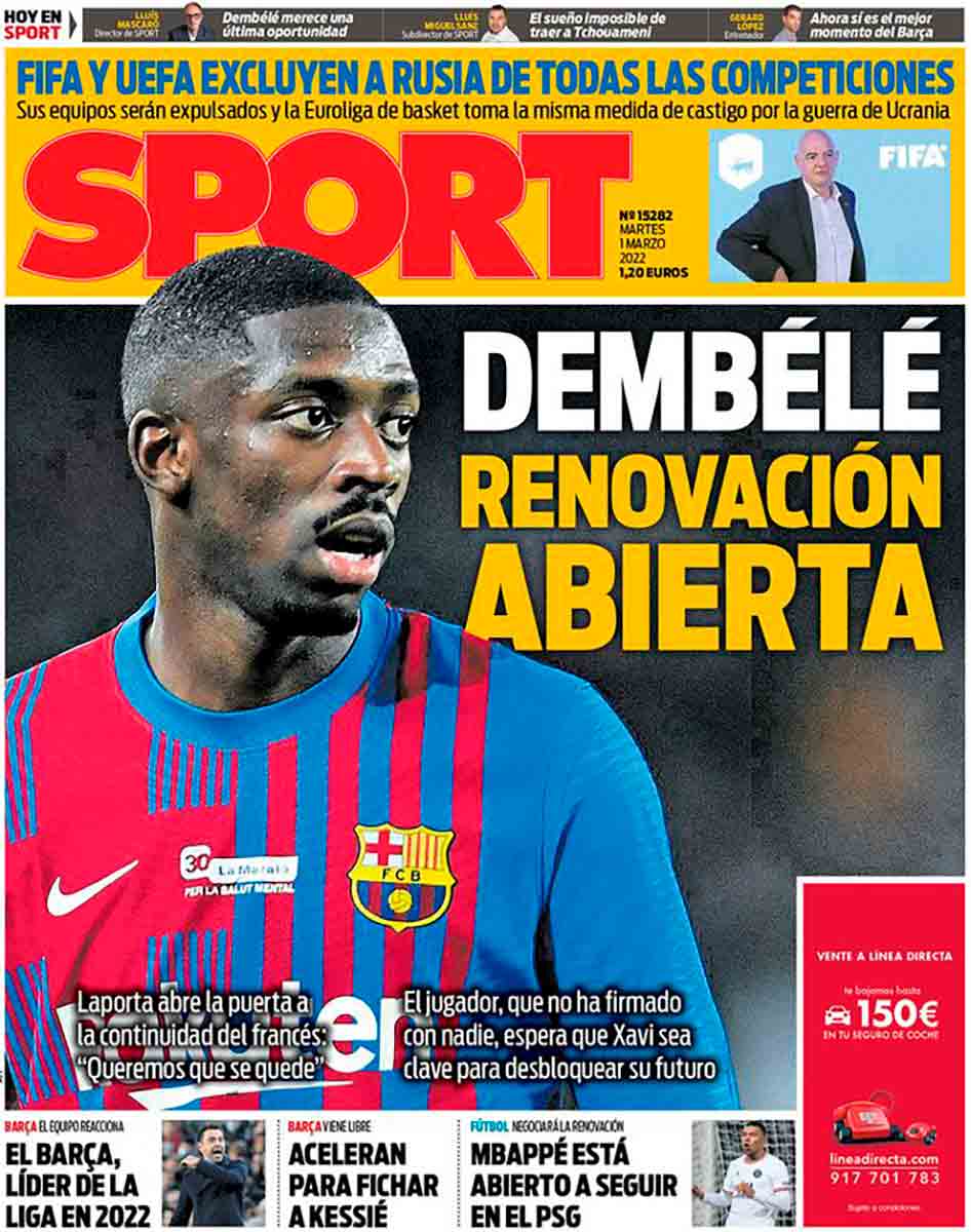 Sport lleva tiempo siendo el abanderado de este mundo al revés en el que ven lícito, entre otras aberraciones, señalar el negocio del padre de un árbitro bajo la acusación de madridismo con el objeto de sublevar contra él al antimadridismo y de paso conseguir un mayor favor arbitral para el Barça. De modo que tampoco nos vamos a extrañar si en estos tiempos que vivimos ellos dicen cosas como que el Barça es líder de una hipotética competición que también llaman Liga, pero que limitan solo a 2022, que la renovación de Dembélé está abierta o que Mbappé está abierto a seguir en el PSG. Ahora que apenas se imprimen ni leen periódicos en papel, Sport no tiene utilidad y ha dejado de tener razón de ser.