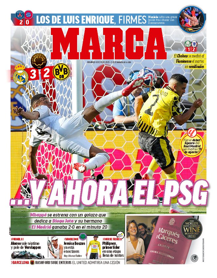 Como bien señala Marca, el Madrid ganaba 2-0 en el minuto 20 y lo tenía todo perfectamente controlado. Es legítimo empezar por criticar lo negativo, a saber, la inexplicable bisoñez de Rüdiger en un rechace que nos complicó la vida encajando un 2-1 absolutamente evitable. Ahí se produjo el grandioso golazo de Mbappé que Marca trae a portada, el 3-1 que parecía sentenciar la cosa, abortando sustos.