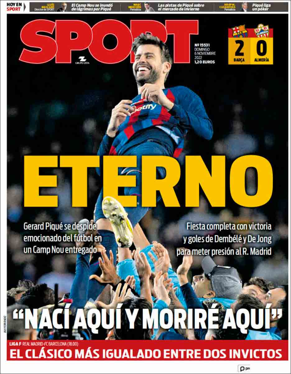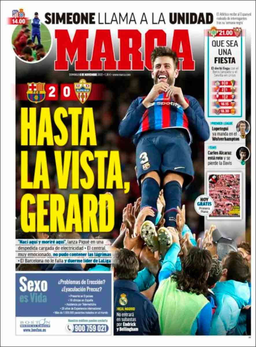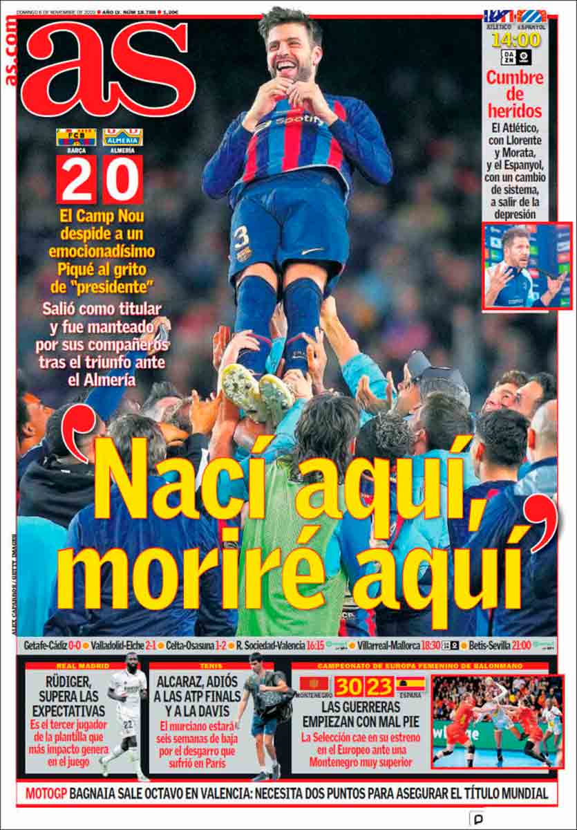 La afición culé lo sabe y así parece quererle de tanto que se quiere él a sí mismo. Tal vez por eso haya habido en las gradas tantos teléfonos móviles inmortalizando el momento del adiós de Piqué, para que, al llegar a casa, sea posible repetir la escena y seguir mirando a Piqué como quien se mira el ombligo hasta que, tal vez, vuelva Piqué como presidente, según se adivina, según casi se anuncia oficialmente desde hace años y según se cantó ayer en el Spotify.