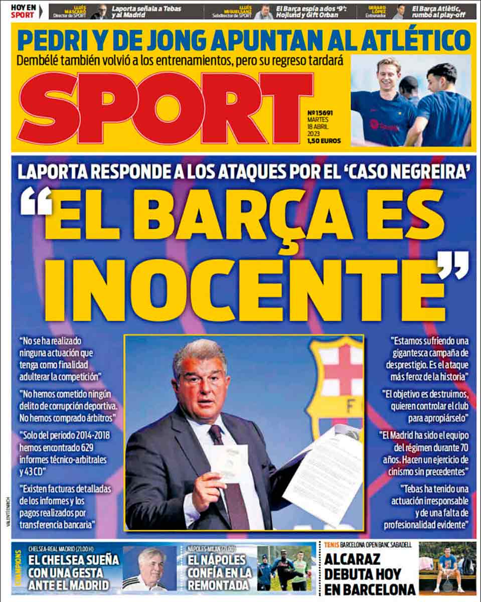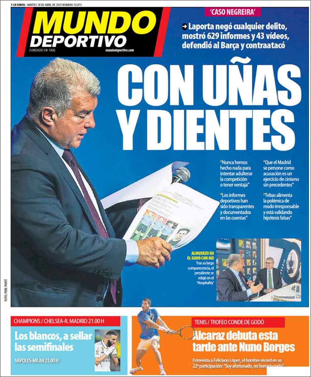 Marca define bien en su portada el comportamiento de Laporta, de quien dice que se defiende atacando de modo infantil al Madrid.