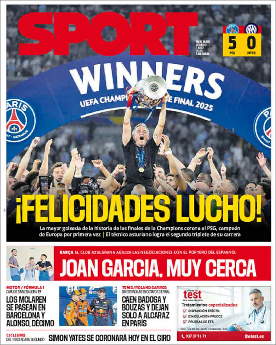 Buenos días, amigos. El PSG de Luis Enrique goleó (5-0) al Inter de Milan en la final de la Champions, en una descomunal exhibición futbolística.
