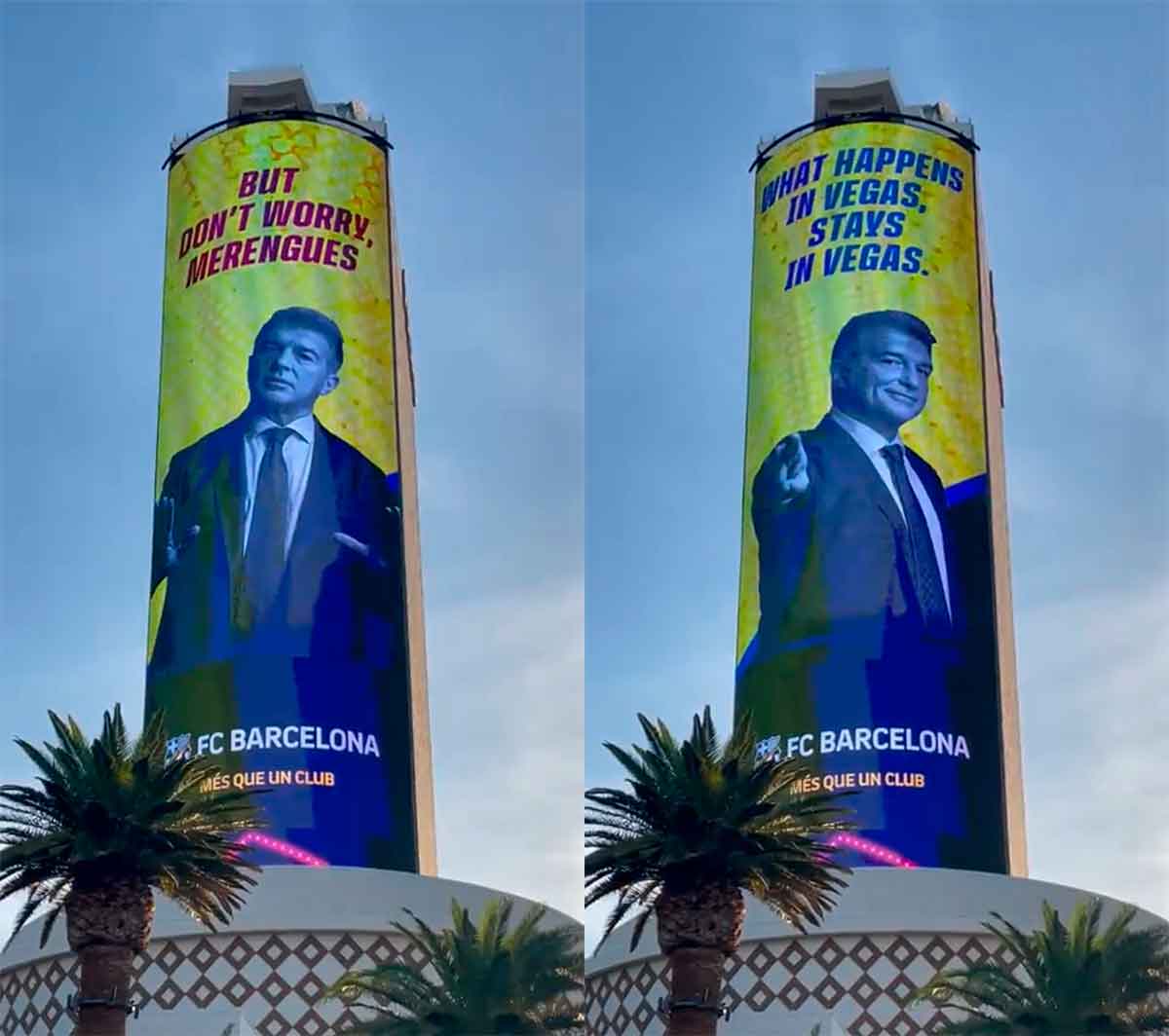 Laporta precisamente es el protagonista una vez más. Qué sorpresa. El afán por llamar la atención del presidente del Barça está a la altura de personajes como Jesús Gil o el todólogo César Carballo. La última ha sido un cartel luminoso. Mejor vedlo:
