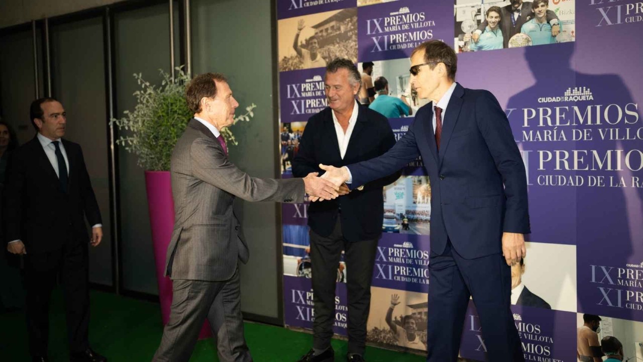 Emilio de Villota, junto al presidente de la Ciudad de la Raqueta, Javier “Koki” Martí, llamaron al escenario a Emilio Butragueño, director de Relaciones Institucionales del Real Madrid, para que hiciera entrega de este galardón más que merecido.