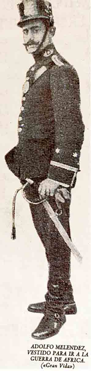 En su condición de teniente de intendencia fue llamado a luchar en la Guerra de Melilla en agosto de 1909 tras las sangrientas revueltas de las cabilas del Rif. Con vocación y obediencia dejó la capital apenas un año después de alcanzar la presidencia con la nueva de meta servir a España y al Rey. Fue destinado al Ejército de Melilla con la misión de levantar un campamento en la zona de Mar Chica y aprovisionar a las posiciones en Sidi Hamet el Hach y Atalayón. Contaba con 25 años cuando llegó al andén de la estación de Alcalá de Henares desde donde partió un enorme destacamento a Málaga, lugar en el que se encontraba el vapor Valverde que los conduciría hasta la costa africana. La gente les despidió cantando “Ni me pinto ni me peino ni me ponga la mantilla hasta que venga mi novio de la guerra de Melilla”.