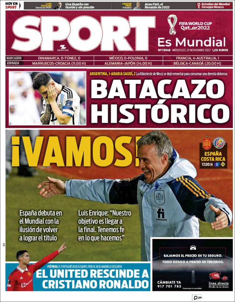 Buenos días. Tomamos prestado de Tomás Roncero el título del portanálisis de hoy, pues no en vano quien algunos califican de manera dogmática como el mejor futbolista de todos los tiempos se pegó ayer un nuevo costalazo en ese largo historial de fracasos mundialistas al que cabe añadir un historial, no menos largo y oneroso, de humillaciones europeas con su club (París, Turín, Roma, Liverpool, Lisboa, etcétera). Sí, ya sabemos que habíamos dicho que no hablaríamos del mundial, pero en esta sección comentamos las portadas, y las portadas hablan de ello.