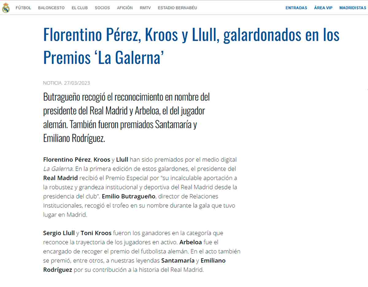Florentino Pérez, Kroos y Llull, galardonados en los Premios ‘La Galerna’.#RealMadrid