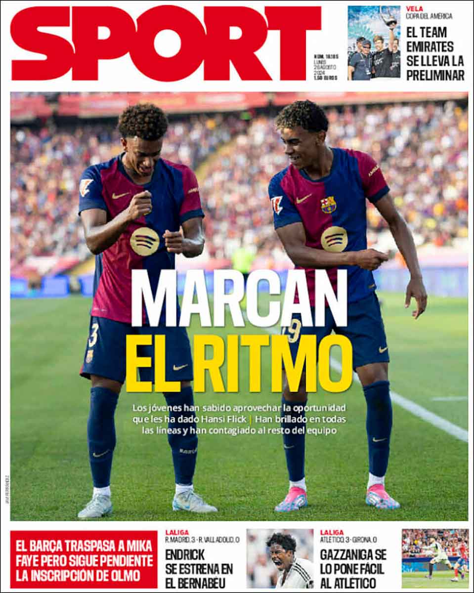 En el mundo cataculé brilla el sol. Han ganado sus dos partidos hasta el momento y presumen de su dupla de ataque. En Sport presumen también de lo bien que bailan juntos Lamine Yamal y Balde cuando marcan un gol. Esto nos ha extrañado un poco. Teníamos entendido que, desde que lo hizo en su momento Vinícius, bailar para celebrar un gol es una provocación intolerable. Se ve que no es el qué sino el quién, dado que a los amics de Sport no sólo no les parece mal que sus chicos bailen para exteriorizar su alegría tras marcar, sino que presumen de ello en portada.