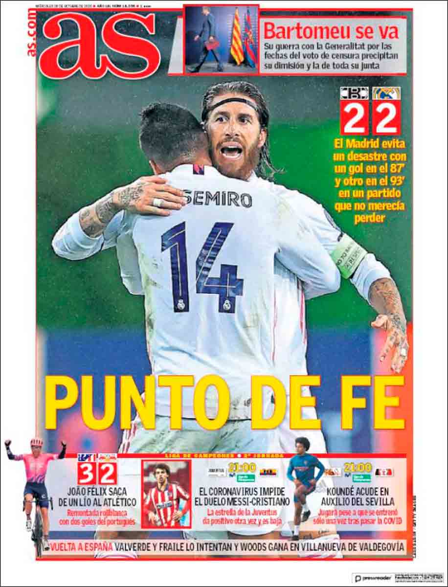 Sufrimos ayer noche y sufrimos de lo lindo, pero el Madrid no se rinde nunca y lo demostró una vez más. A Vini hay que dejarle tranquilo que ya habrá quien quiera desestabilizarlo. Es joven y tiene margen de mejora y hay que cuidarlo. Físicamente el Madrid anduvo bien aunque hubo ciertos despistes defensivos que nos complicaron, y mucho el partido. Nos falta un rematador, un 9 que haga goles. Los dos goles se originaron en sendos cabezazos de Casemiro y Ramos que fueron rematados posteriormente por Benzema y por el propio Casemiro. Bartomeu es ya historia y cuanto menos hablemos de él, mejor para el madridismo. Hay que ser optimistas y hay que seguir creciendo, y creyendo en el Madrid. Hala Madrid.