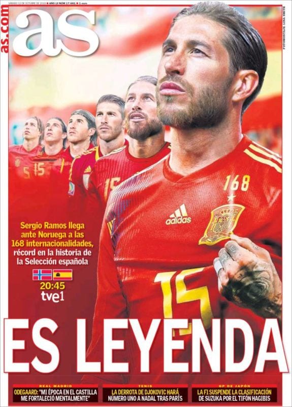 Nos parece bonita, vaya esto por delante, la portada de As, que nos presenta la evolución temporal de un Sergio Ramos juvenil hasta llegar al Ramos actual, más maduro pero con la frente alzada con el mismo orgullo. Todo muy bien mientras no se pretenda -y la prensa española sería muy de pretenderlo- que este meritorio récord sea un pasaporte a la titularidad indiscutible de Sergio en el Madrid.