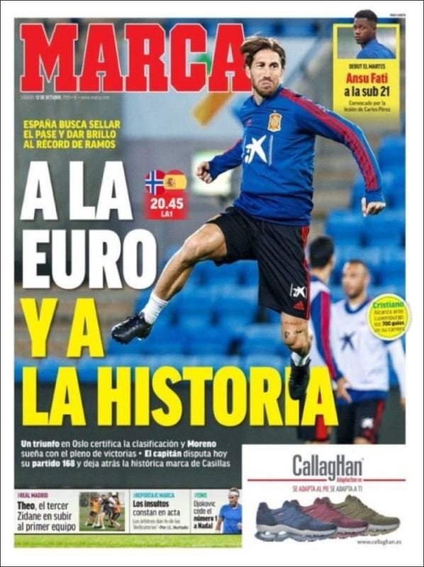 Marca también alude al registro que hoy pulverizará Ramos, si bien personaliza menos y pone el foco en la conveniencia de que la Roja gane en Oslo para sellar su pase a la próxima Eurocopa. En el partido podrán seguirse las evoluciones de un Ødegaard a quien Roger Moreno, ante los micrófonos, negó un hipotético puesto en el once de España, caso de haber sido español el muchacho. Nos preguntamos tanto a qué viene esa pregunta como cuántos partidos de Ødegaard en la Real ha visto Moreno en lo que va de temporada.
