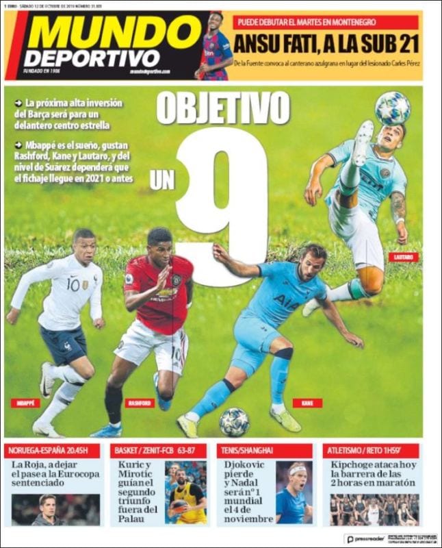 La portada de Mundo Deportivo nos habla, muy seria, del fichaje de un hipotético crack para el ataque del Barça. El sueño es Mbappé, pero “gustan Rashford, Kane y Lautaro”. Así, como plan B, no está mal, y conviene enunciarlo con esa misma naturalidad, como quien no quiere la cosa. Las finanzas culés están de rechupete. Mejor todos ellos, ya puestos.